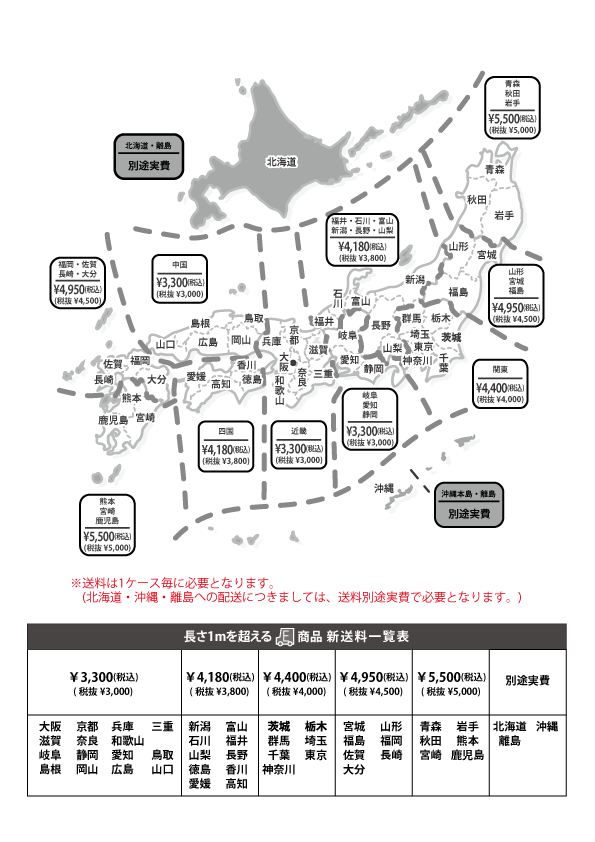 小物送料・長物送料並びに
